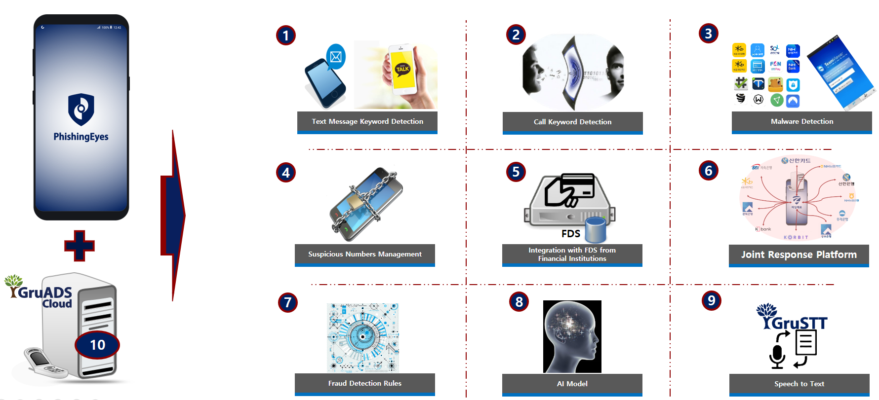 phishing fraud scams send fraudulent text messages such as low-interest loan announcements through SMS or Kakaotalk messenger to trick users to make phone calls. PhishingEyes extracts the keywords that scammers use to prevent phishing fraud